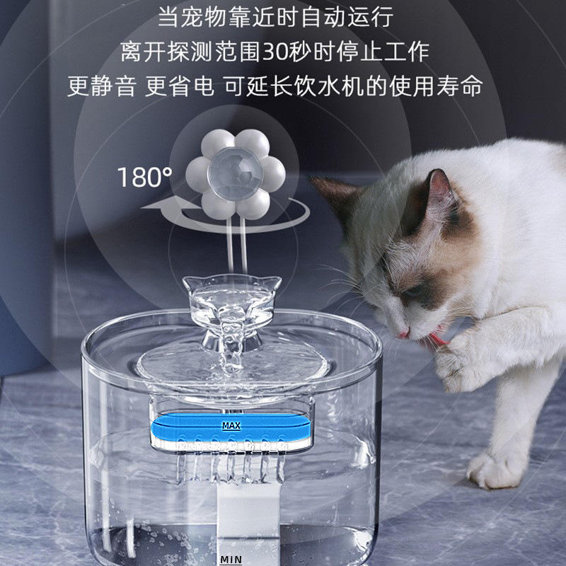 Pet Water Fountain For Cats And Dogs Transparent With Max Min Marking Detachable Design Silent Operation 0.6kg Weight