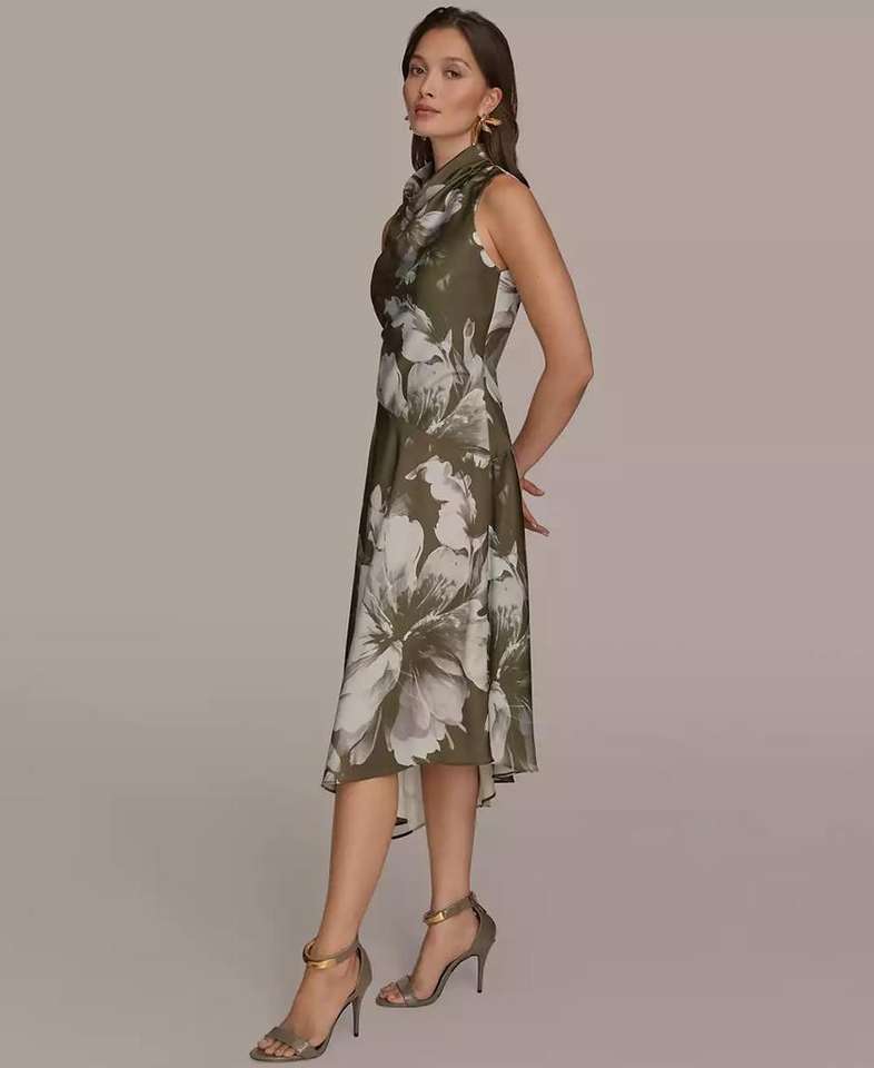 Petite Satin Asymmetrical Floral Midi Dress | Donna Karan New York