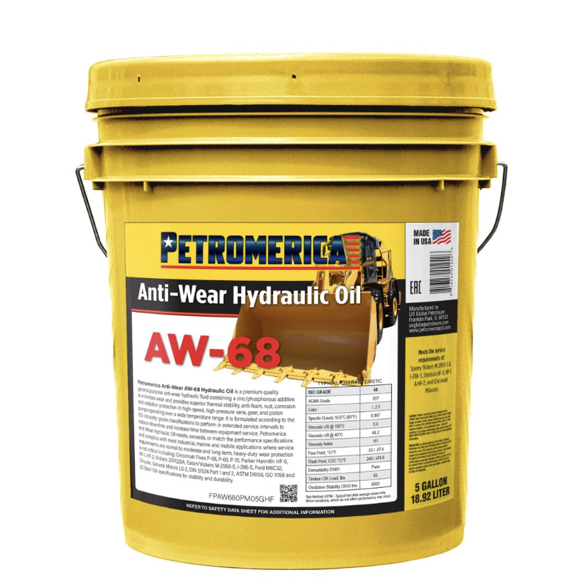 Petromerica Anti-Wear AW-68 Automotive Lubricant Hydraulic Oil 5 Gal Pail