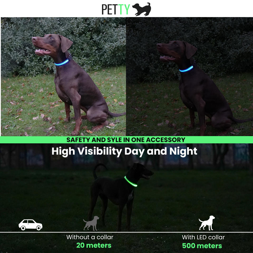 PettyItalia Dog Collar - Non-Adjustable USB Rechargeable Collar with Buckle Closure and Safety Button