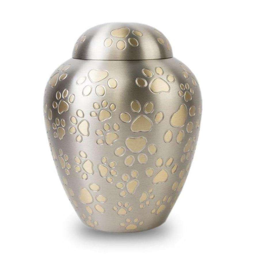 Pewter Paw Print Cremation Urns Cat And Dog Memorial Ashes Keepsake Urn Handcrafted New Dome Shape Custom Pet Urns Cheap price