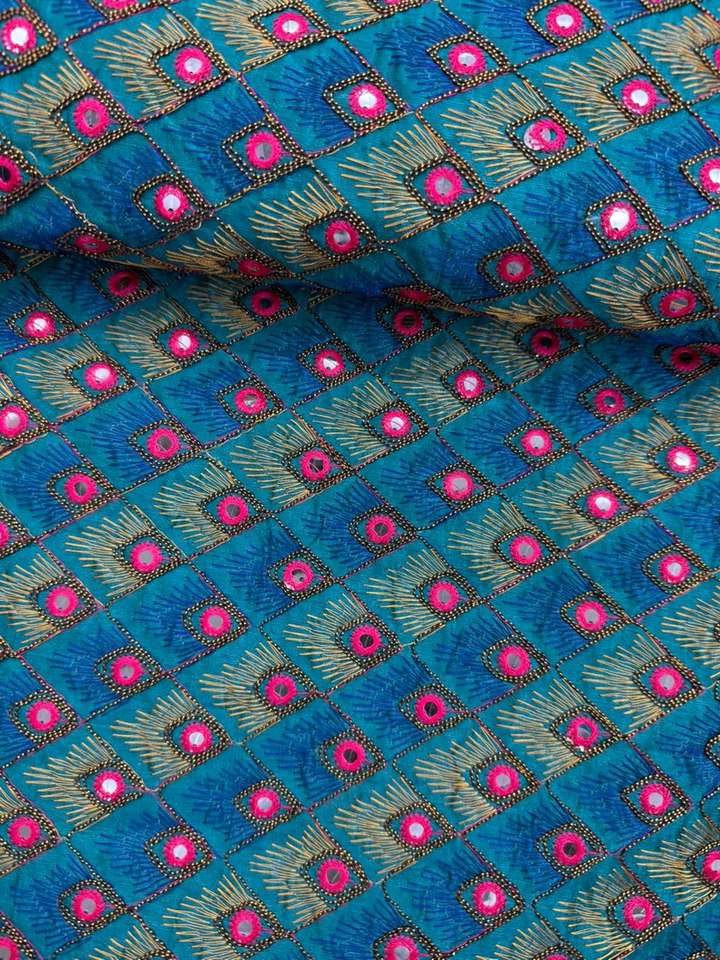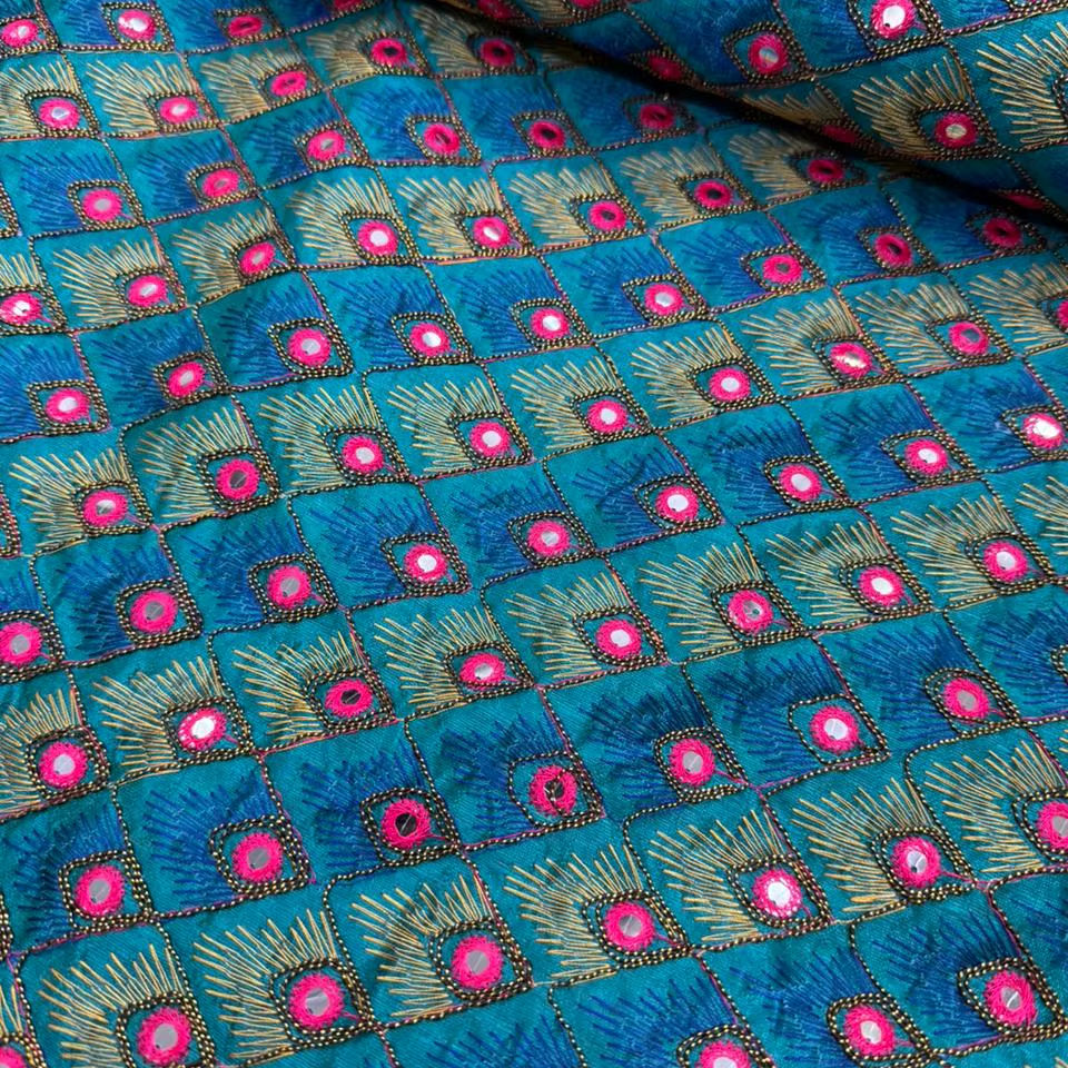 Phantom Katli Heavy Mirror Work Embroidered Fabric All Over Design for Wedding Outfits Sarees Lehenga Fashion at Best Price