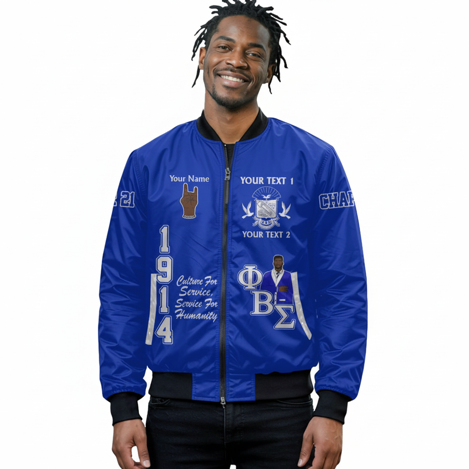 Phi Beta Sigma 1914 Satin Varsity Jacket Greek Fraternity Blue Big Sigma Premium Custom College Wear