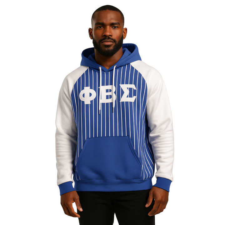 Phi Beta Sigma Blue Body White Raglan Pinstripes Pullover Hoodie Greek Fraternity Apparel Custom Divine Nine HBCU Clothing