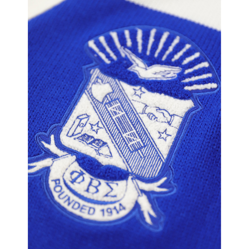 Phi Beta Sigma Sweater Cardigan Royal Blue HBCU Greek Fraternity Apparel 30 Wool 70 Acrylic Chenille Embroidery Knit Cardigan