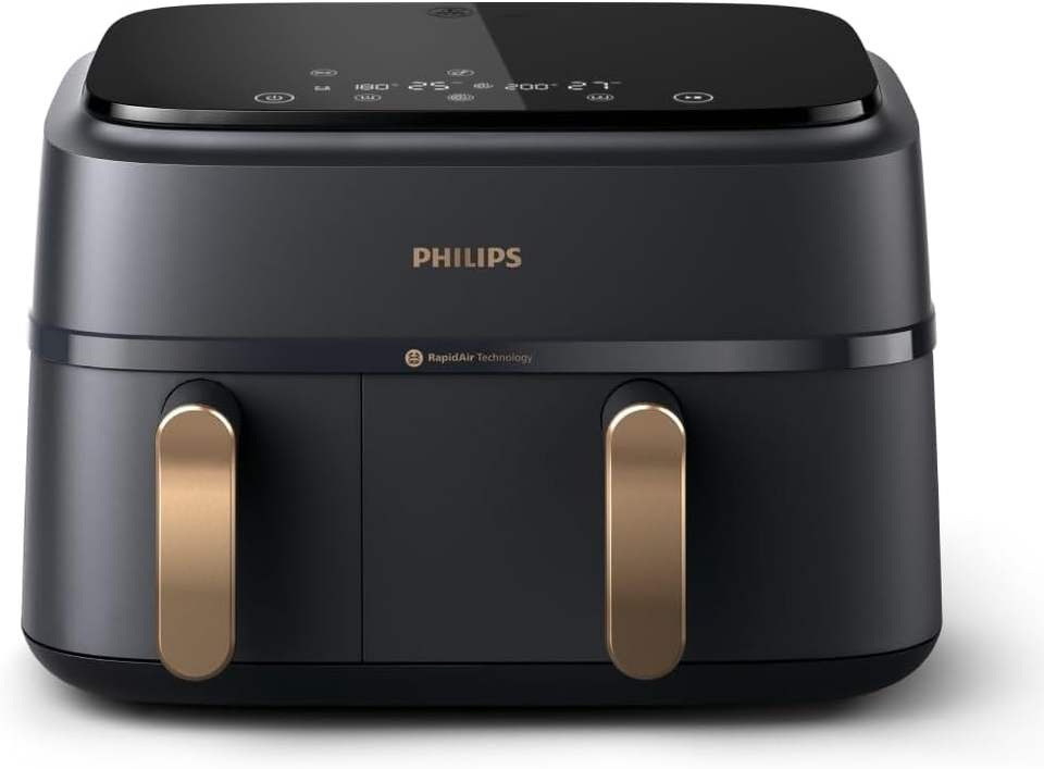 Philips Airfryer Dual Basket 3000 Series Hot Air Fryer 2 Baskets, 2 Dishes at the Same Time RapidAir Plus Technology (NA352/00)