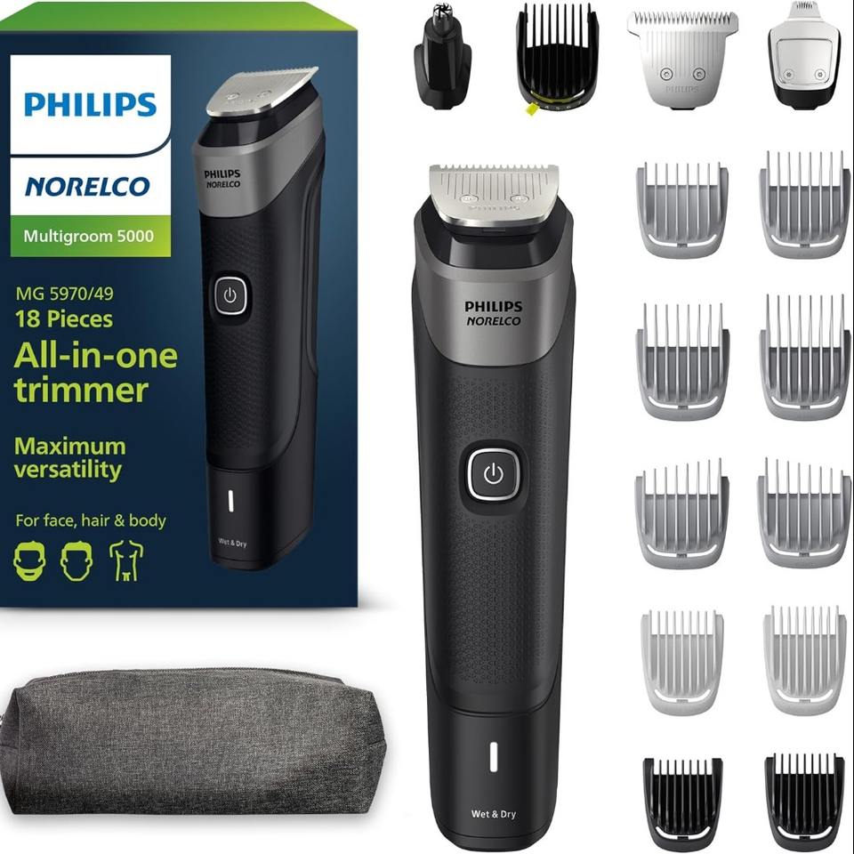 Philips Norelco Multigroom Series 5000 18 Piece, Beard Face, Hair Body and Intimate Hair Trimmer For Men -No Blade Oil MG5900/49