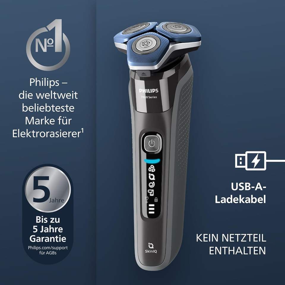 Philips Shaver S7000 Electric Wet and Dry Shaver with SkinIQ Technology in Dark Chrome, Fold-Out Trimmer, S7887/78
