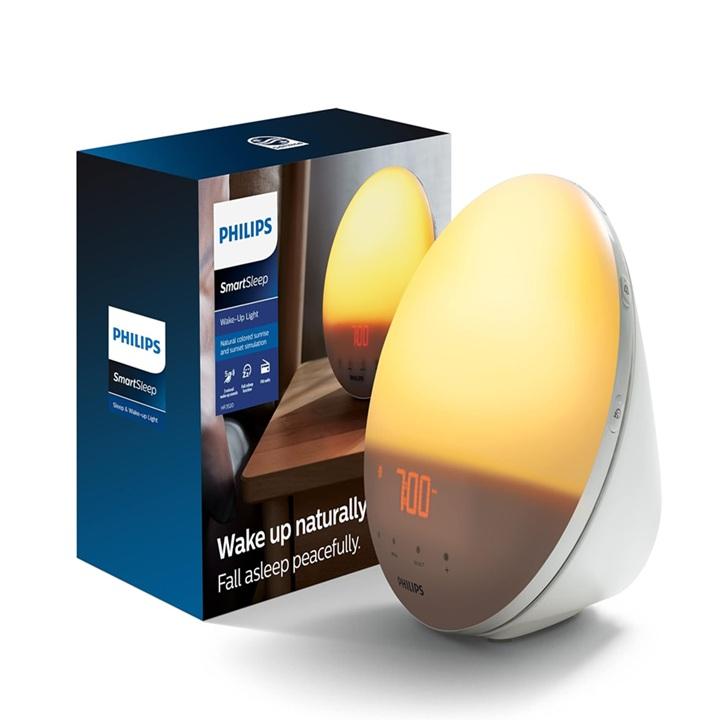 Philips SmartSleep Wake-up Light Colored Sunrise and Sunset Simulation 5 Natural Sounds & Reading Lamp Tap Snooze HF3520/60