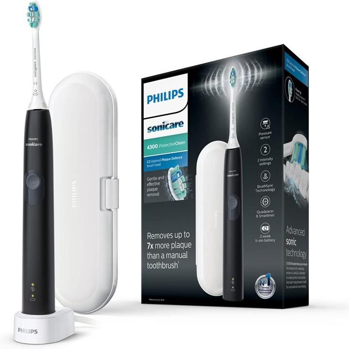 Philips for Sonicare ProtectiveClean 4300 Electric Toothbrush Light Blue with UK 2-Pin Bathroom Plug HX6803/03 Toothbrush