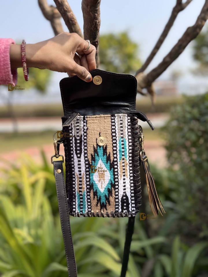 Phone Purse Handbag Real Jacquard Leather Hand Tooled Carving Sling Bag Small Size Bags Wristlet Aztec Saddle Pouch Sling Bag