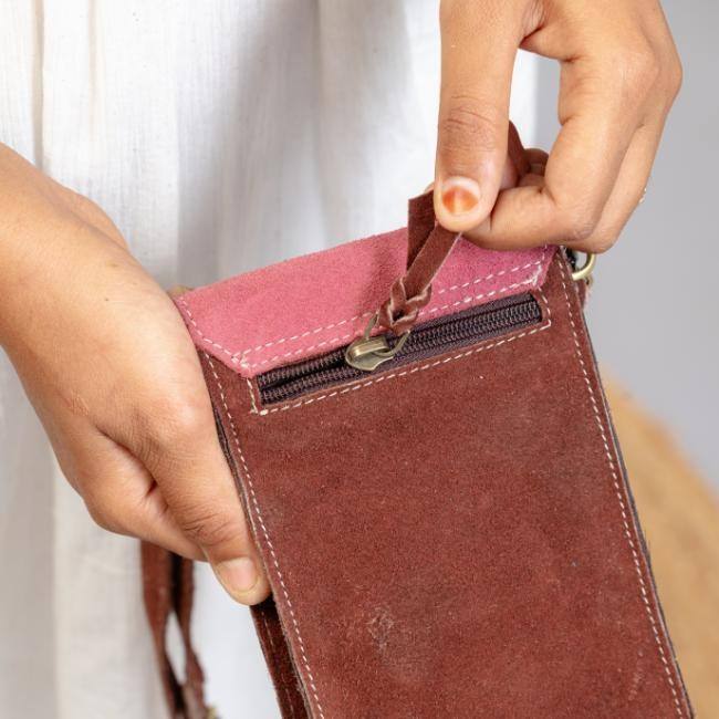 Phone Purse Shoulder Bag 100% Genuine Leather Hand Tooled Boot Stitch Carving Sling Bag Small Size Bags Wristlet Pouch Sling Bag