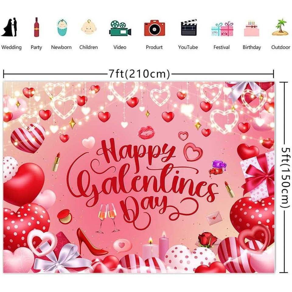 Photo Booth Happy Galentines Day Decorations 7x5ft Pink Love Heart Party Banner Photo Booth Props Sign for Women Friends Decor