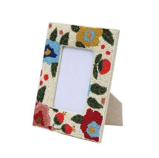 Photo Frame Rectangular Seed Bead Picture Holder Tabletop Handcrafted Portrait Case Desk Top Gallery Display Home Office Stand