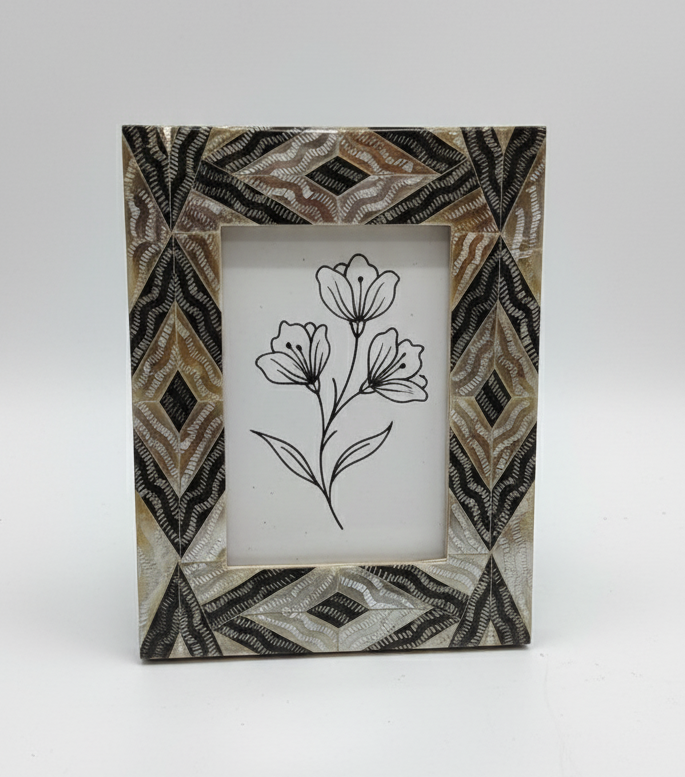 Luxury Horn Inlay Photo Frame with Brass Molding | Handmade Natural Horn Picture Frame | Dual Brass Trim Decorative Table Frame