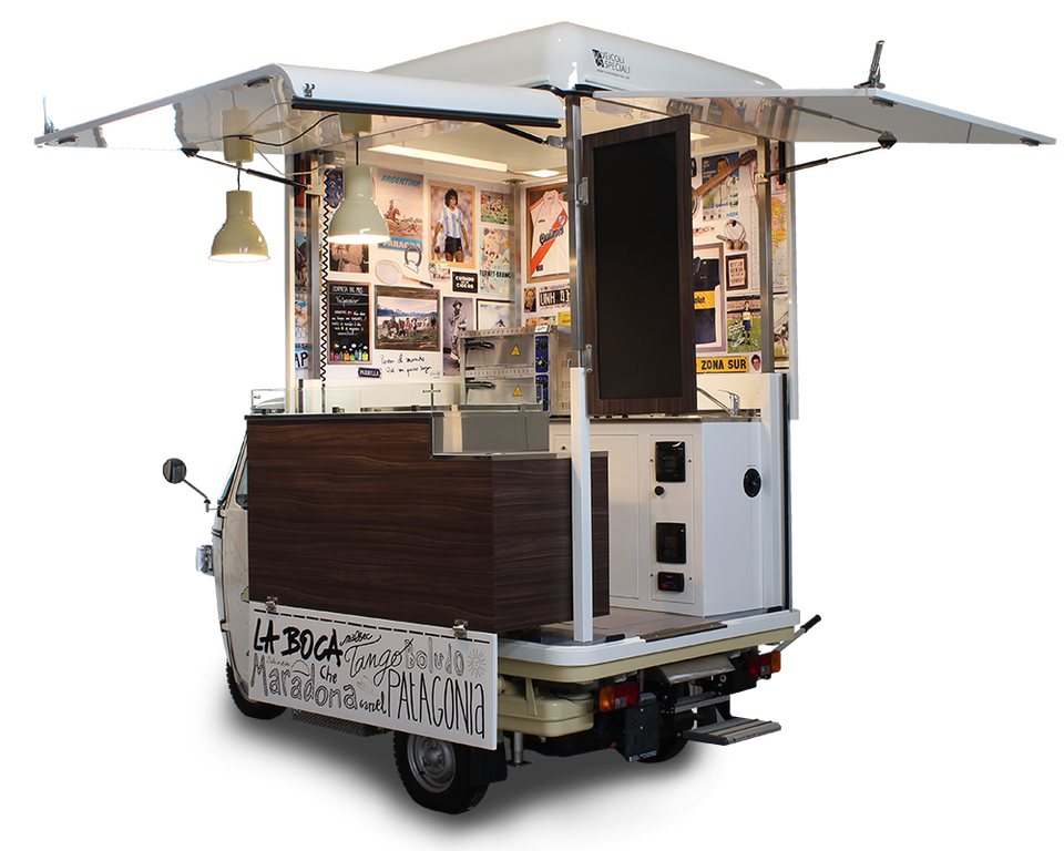 Piaggio Ape Espresso Mobile Tuk Tuk Gasoline Cargo Tricycle Open Body Rickshaw Style Water-cooled Engine Lithium Battery for