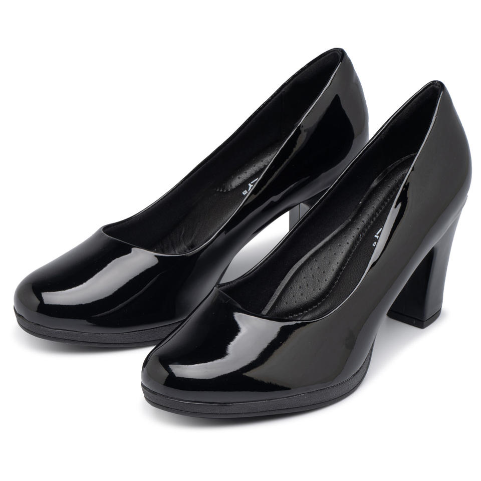 Piccadilly 1 Black Patent 7.5cm Pump Heel Heel Pumps Comfortable Office & Flight Attendant Shoes for Working Women