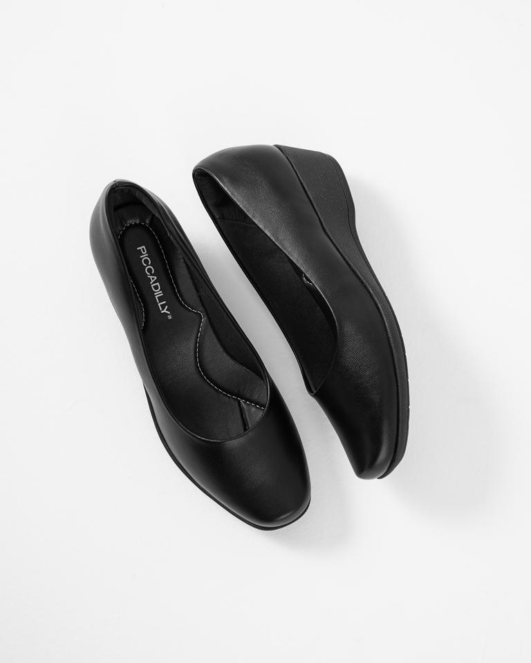 Piccadilly Ballerina Pumps for Working Women Comfortable Black Wedge Design for Office or Flight Attendants