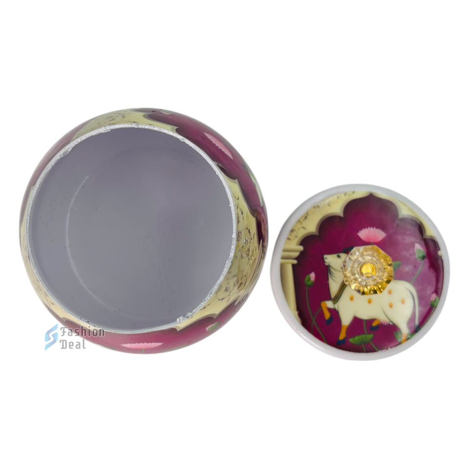 Pichwai 4 Inch Dry Fruit Jar Box Printed Hammered Metal Design with Lid for Kitchen Food Storage Return Gift for Every Occasion