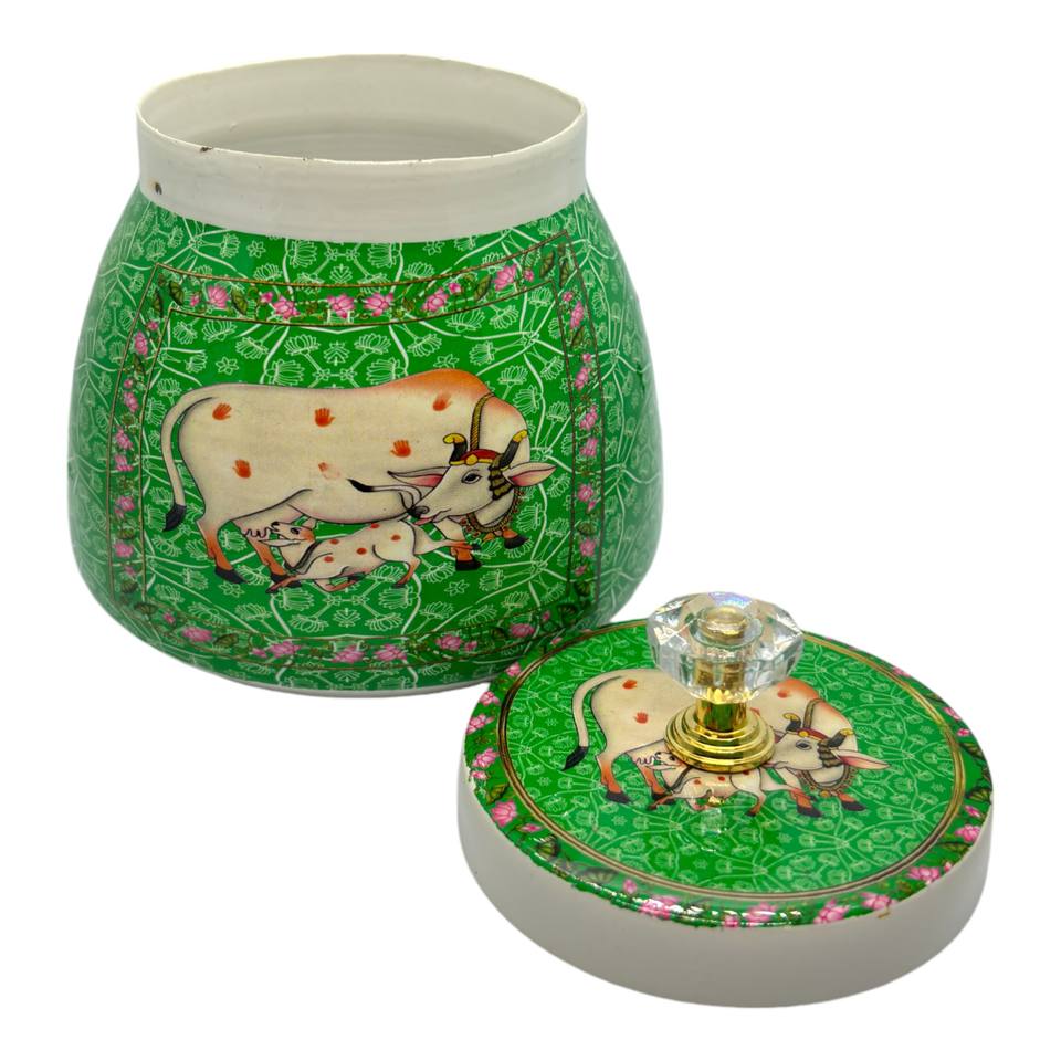 Pichwai 4 Inch Hammered Dry Fruit Jar Box Printed Metal Lid for Food Storage & Return Gift on Every Occasion
