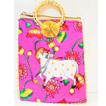 Pichwai cow printed hand bag with bangle handle