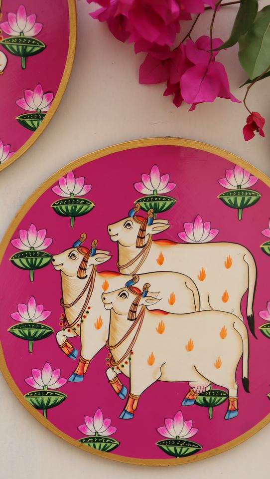 Pichwai Hand Painted Wooden Wall Plates Traditional Art Decor Framed Wall Hanging for Living Room Wall Decor For Gifting