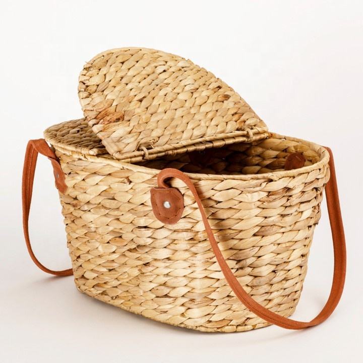Picnic Basket Wholesale Home Kitchen Picnic Food Fruit Vegetables Sundries Water Hyacinth Picnic Baskets with Lid Handle