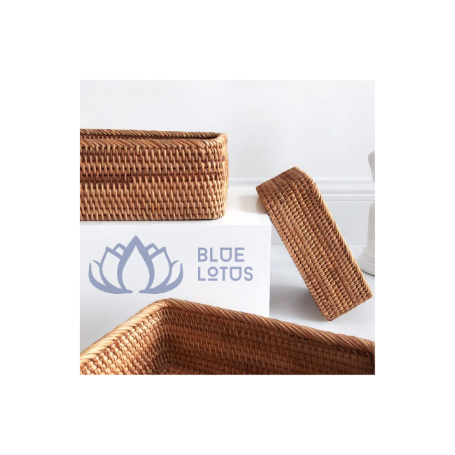 Picnic New Items From Blue Lotus Basket Boho Style Food Storage Compartments Rattan Handle Colorful Wicker Rattan Woven