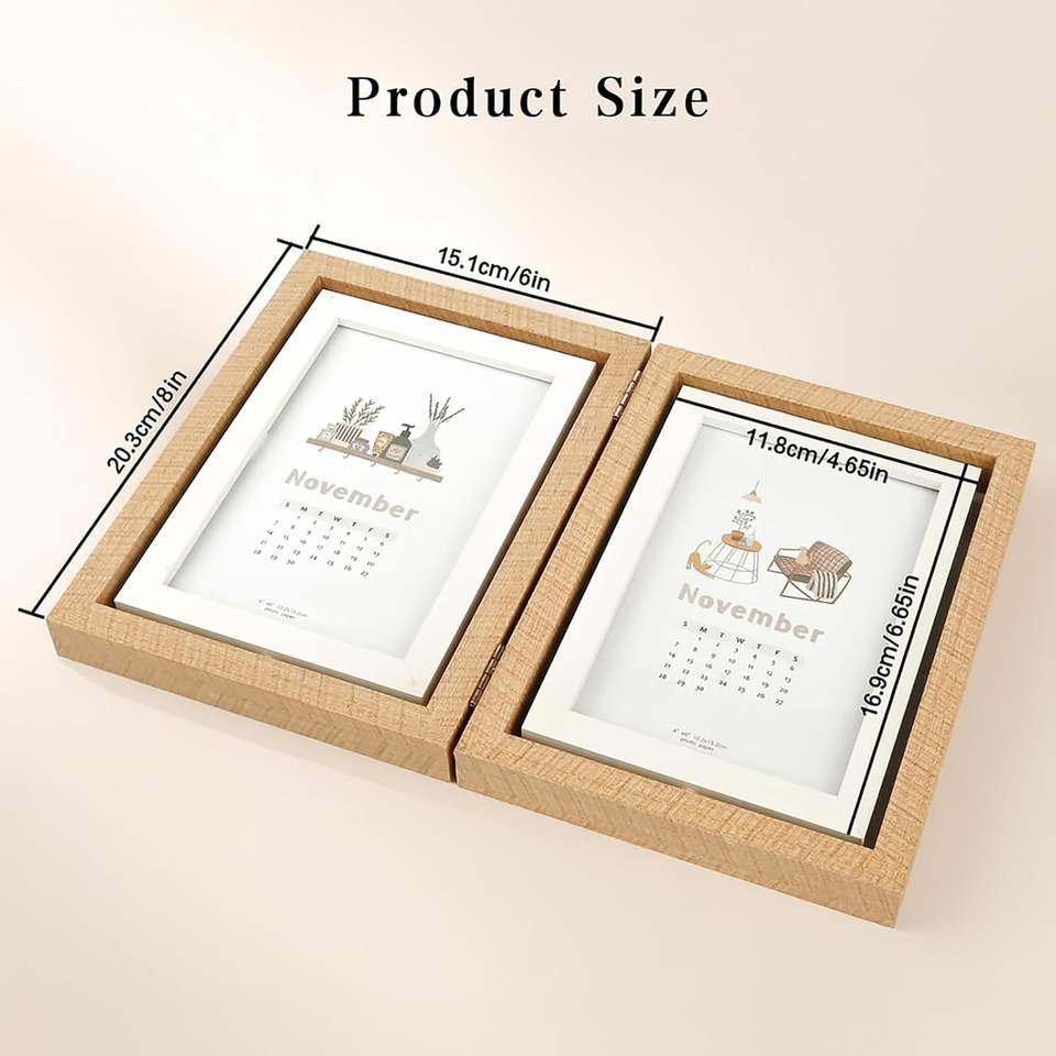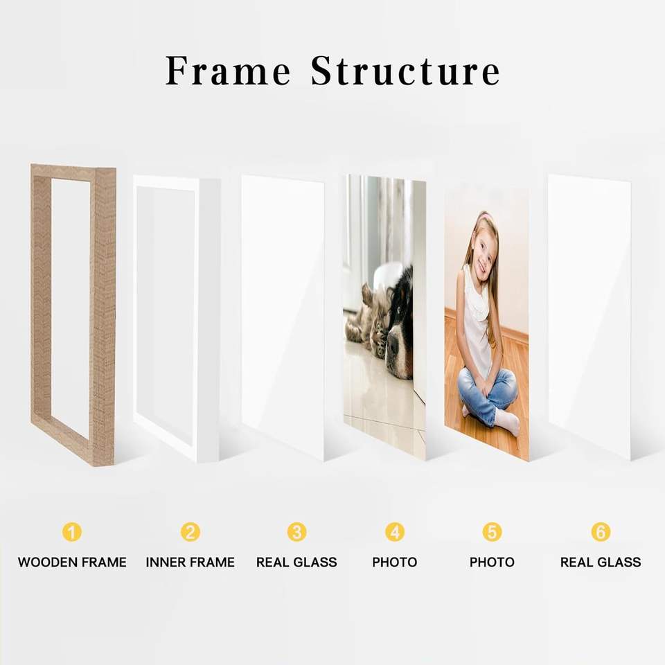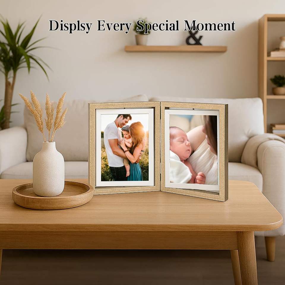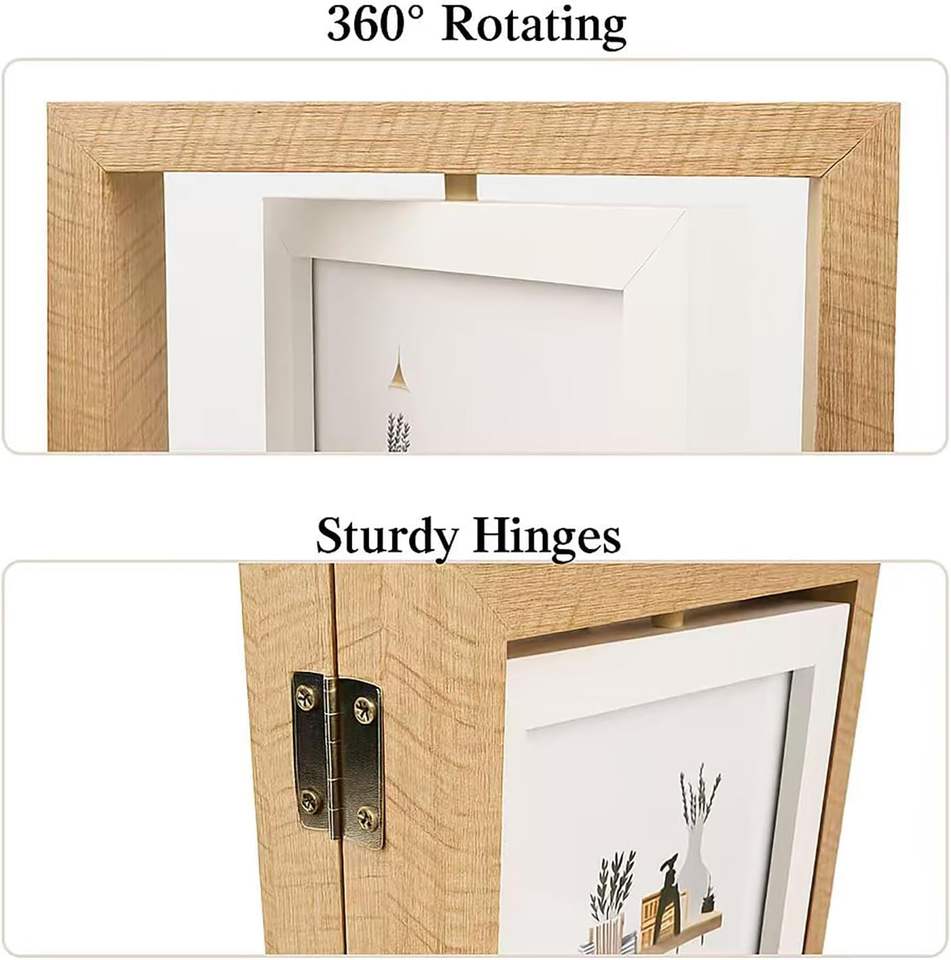 Picture Frame Rotating Double Sided Display for Desk and Tabletop Wooden Floating Photo Frame Picture Frames for Home and Office