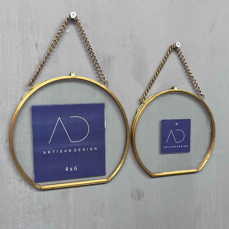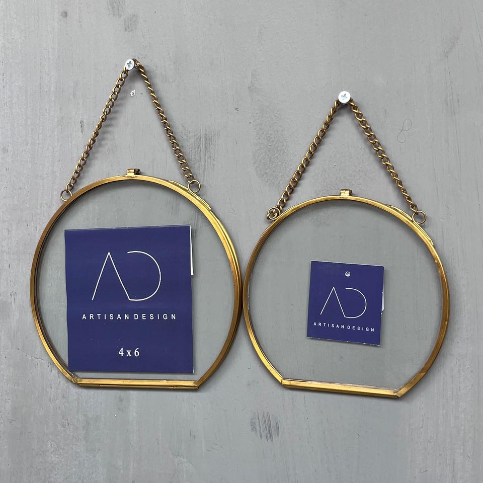 Picture frame set of 2 hanging photo frame unique design with hanging chain brass finish