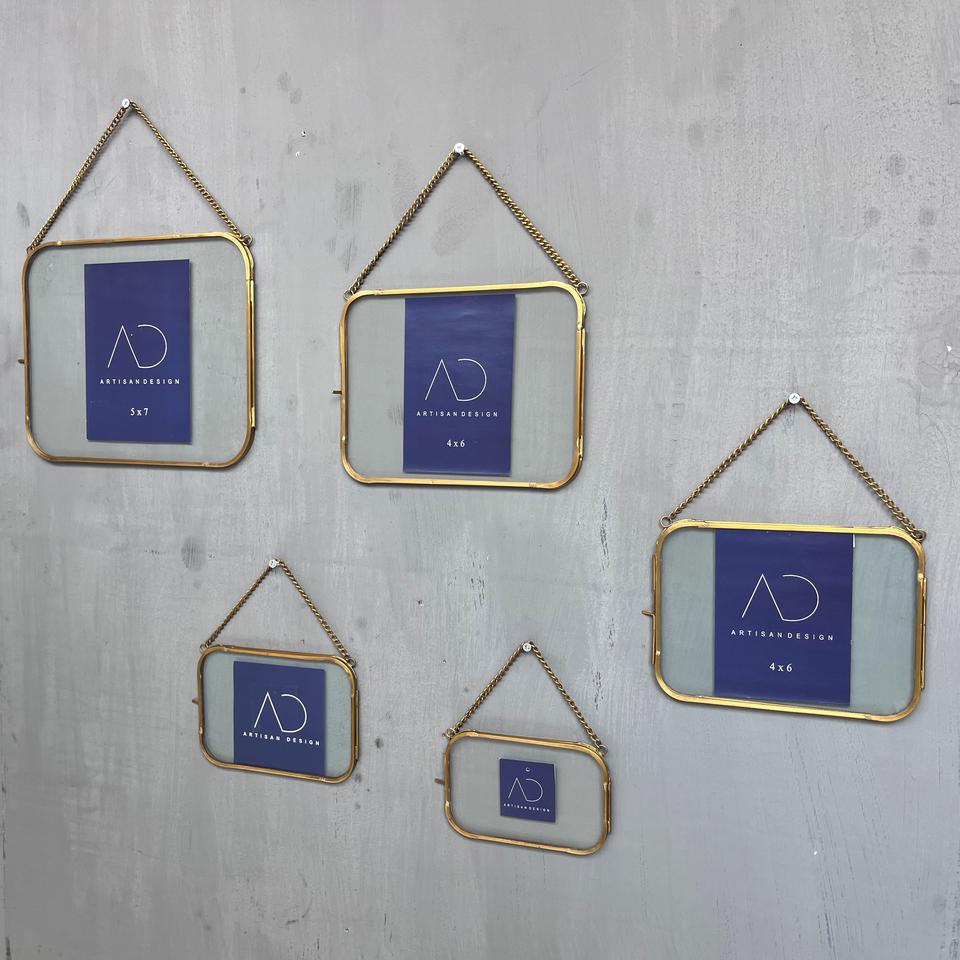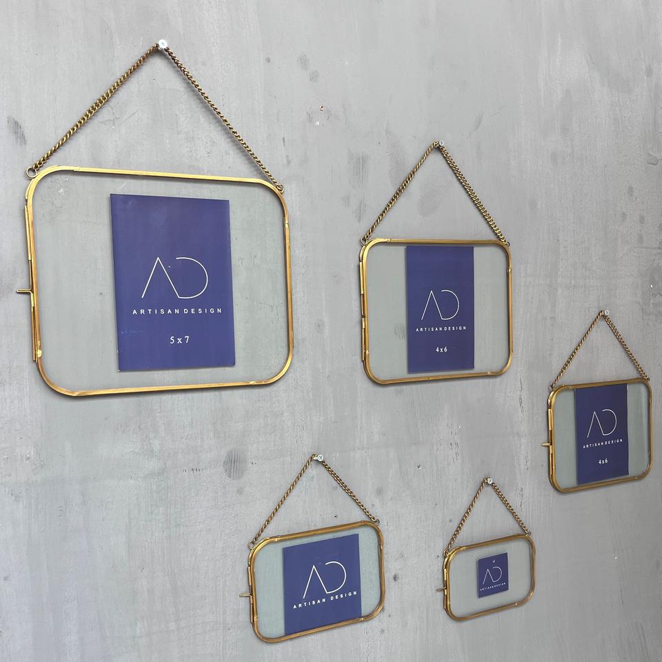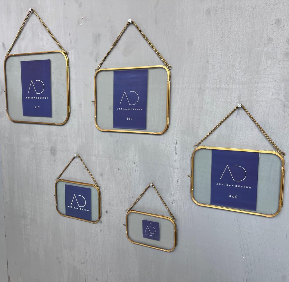Picture frame set of 5 hanging photo frame decorative metal brass and glass with brass finish