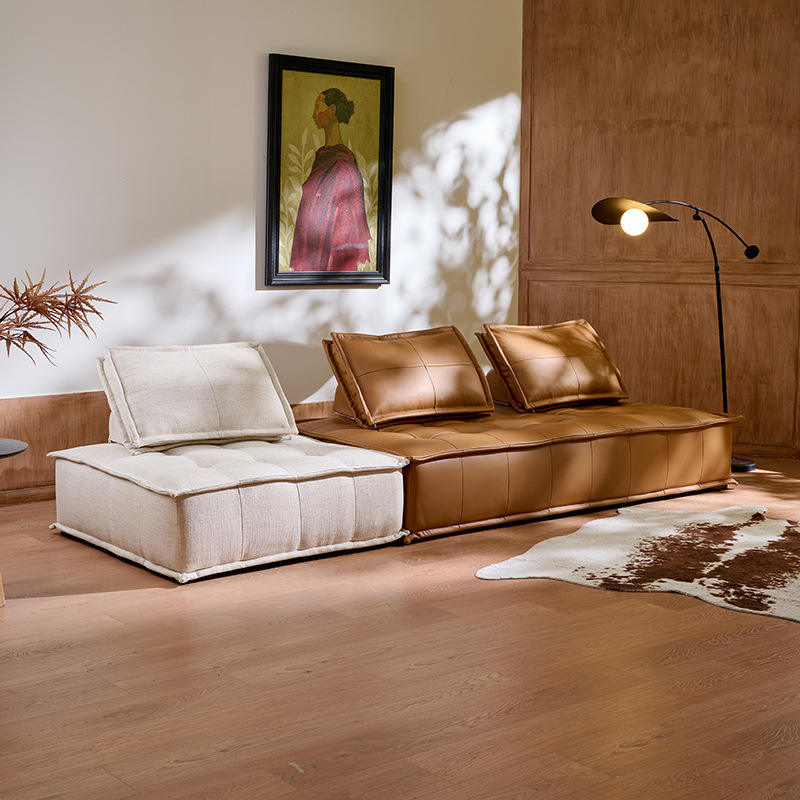 Piedmont Tofu Block Sofa Square Modular L-Shaped Genuine Leather Eco-Friendly Foam Filling Art Design Living Room Sofa