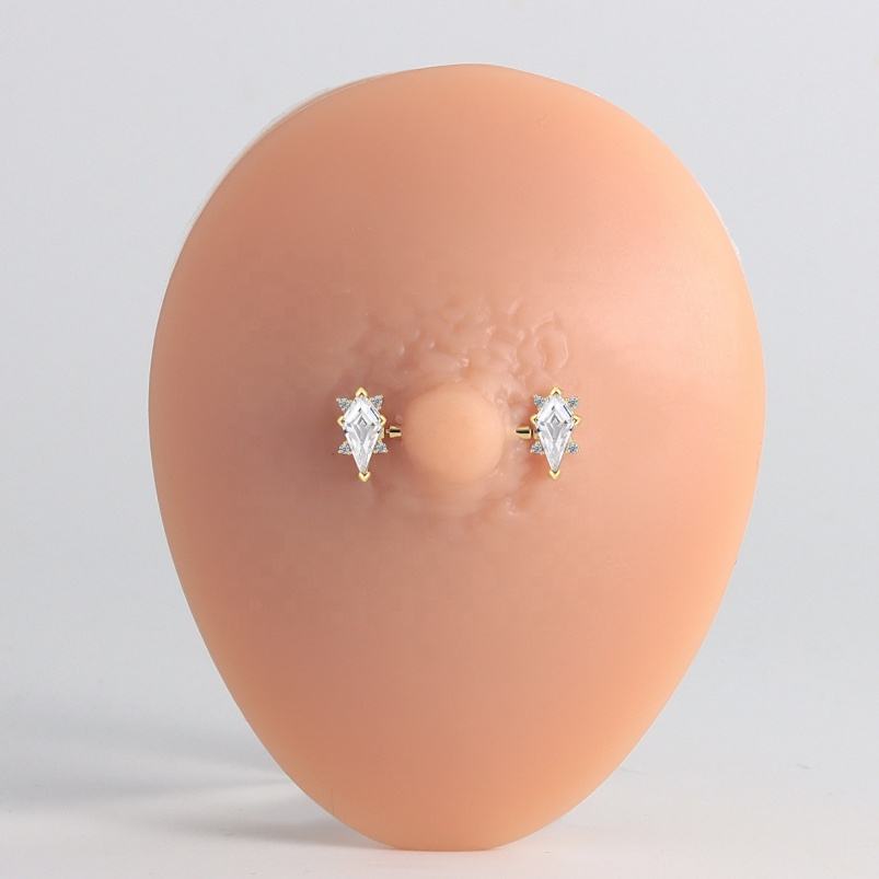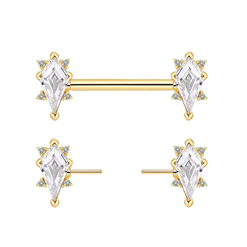 Piercing Stories 14k Solid Gold Kite Shaped CZ Threadless Nipple Ring Piercing Jewelry