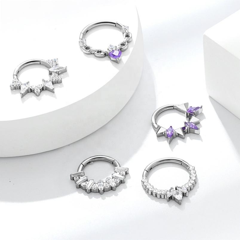 Piercing Stories ASTM F 136 Titanium Marquise Cut Clicker Hoop Ring Piercing Jewelry