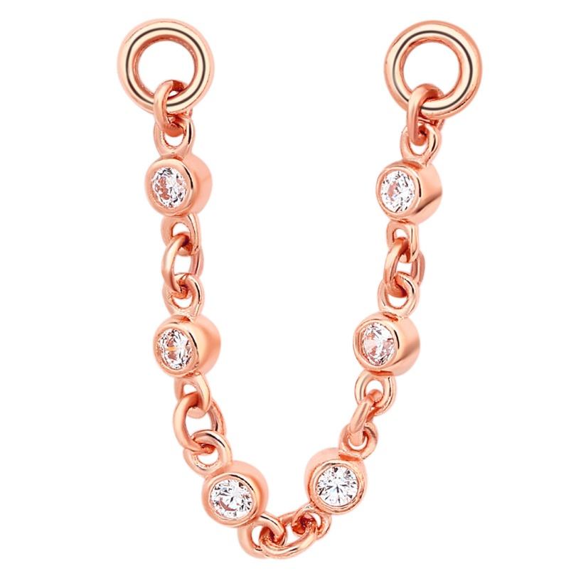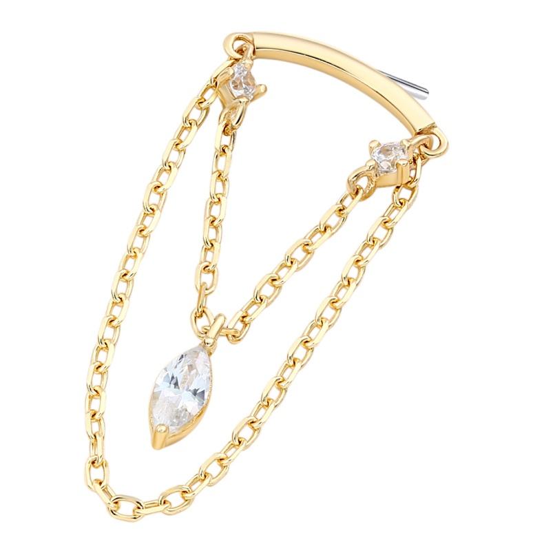Piercing Stories Fashionable 14k Solid Gold Threadless Top With Clear CZ Stones Steel Push Pin Piercing Jewelry