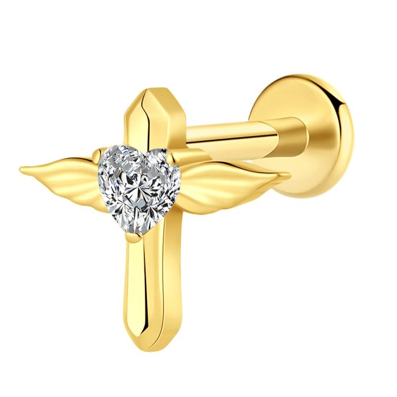 Piercing Stories PVD Gold Color ASTM F136 Titanium Threadless Top With Cubic Zircon Piercing Jewelry