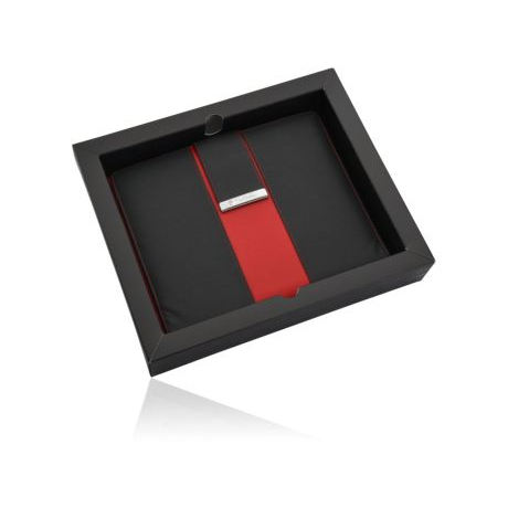 Pierre Cardin® CHARENTE A5/A6 Leather Document Folder Black/Red Ring Binder with Box Pattern Office Stationery