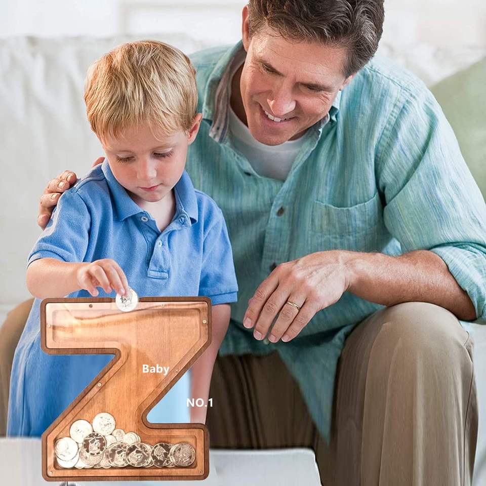 Piggy Bank for Letter Z in 9*8.2*1.1" Clear Wooden Alphabet Money Box, Personalized Change Jar for Kids Creative Coin Bank