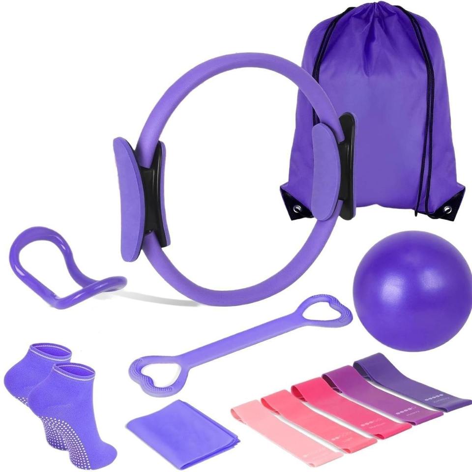 Pilates Ring Yoga Set 25Cm Tpe Resistance Band Ball Socks Portable Fitness Kit For Home Workout