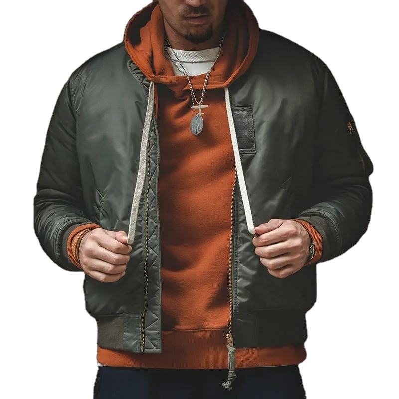 Cotton Jacket Pilot Jacket for Men's Winter Green Cotton Thickened Coat Baseball Pockets Flight Zipper Jacket Outwear Tops