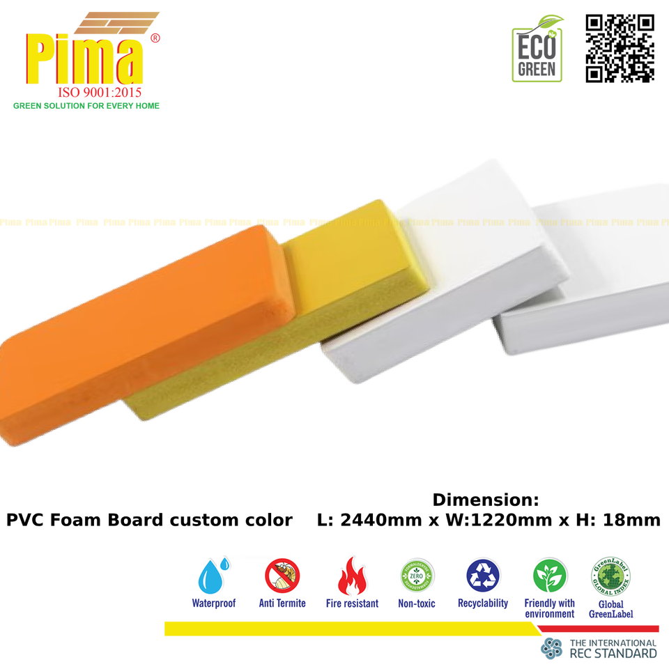 Pima Custom Color PVC WPC Foam Board Sheet 18mm Thickness 0.6 G/cm3 Density Kitchen Backsplashes Cabinet Decoration Wall