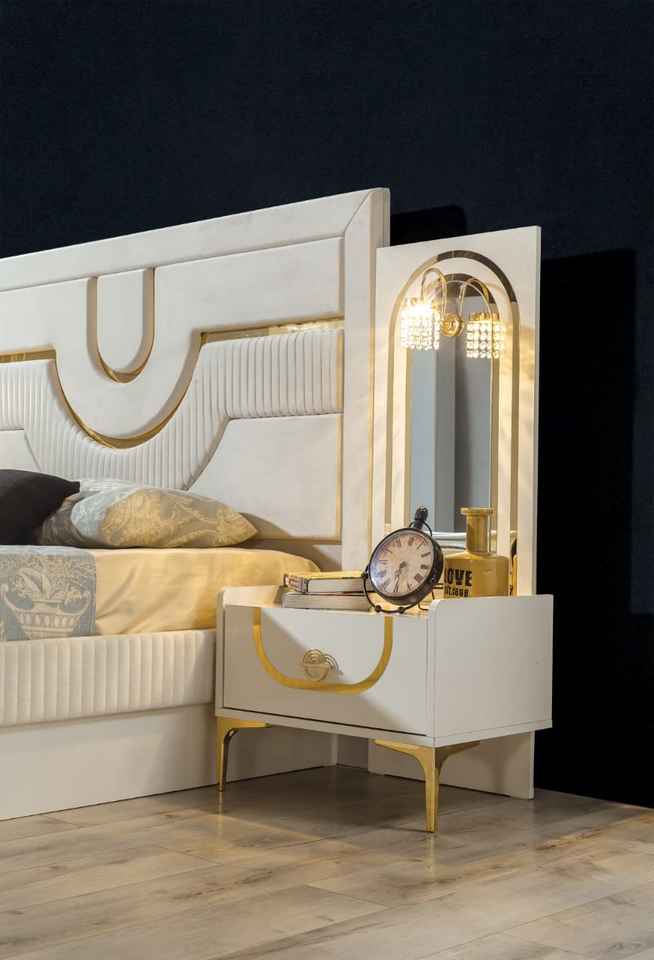 Pinar Couple Modern Home Furniture Bedroom Set Standard Size Wood Storage Mirrored Wardrobe Lighted Headboard Apartment Model