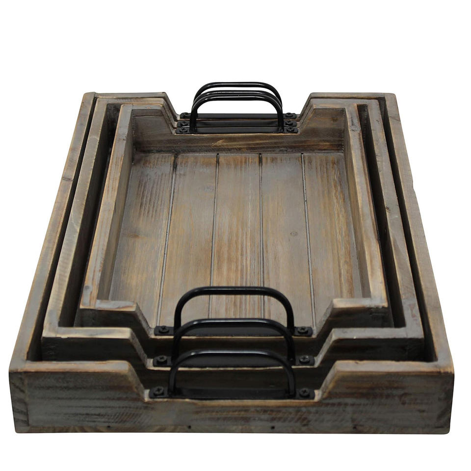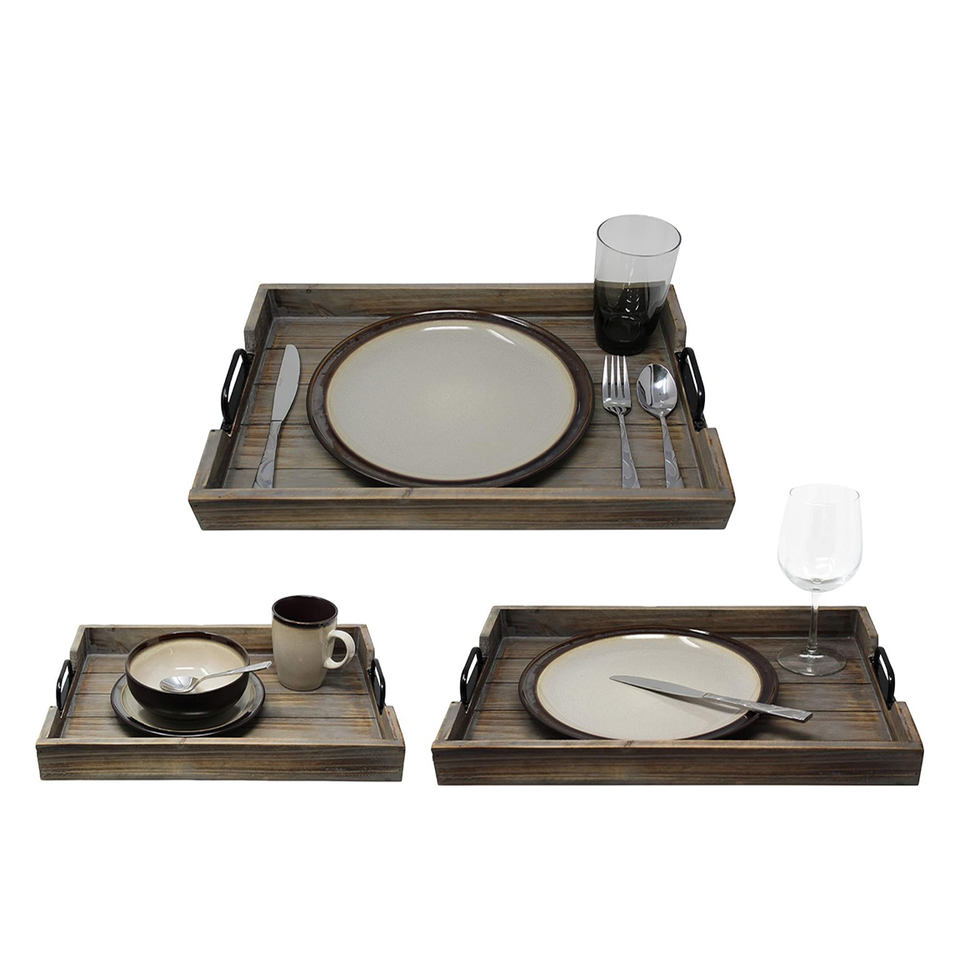 Product Name:Pine Wood Serving Trays with Handles l Set of 3