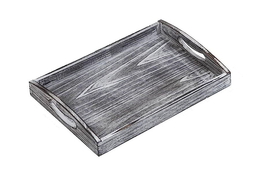 Pine Wood Serving Tray with Handles Hot Selling Burnt White Wooden Tray for Hotel Restaurant Bar and Serving Use at Cheap Price