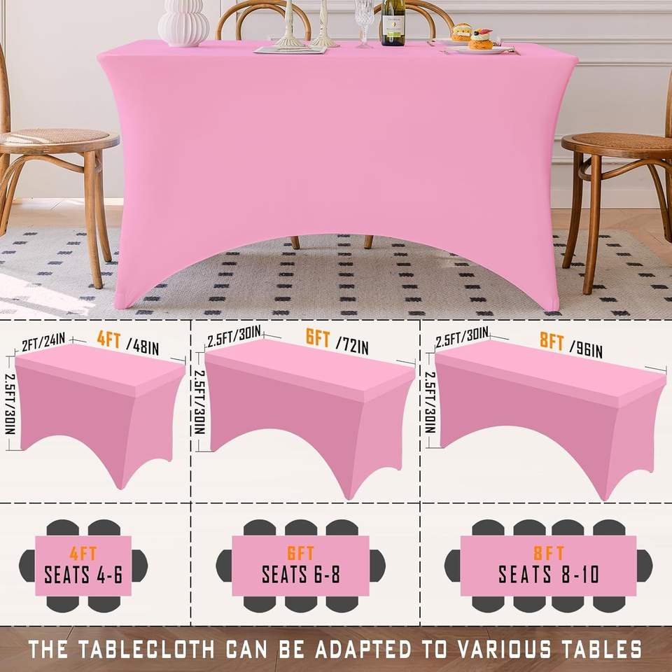 Pink 4FT Spandex Rectangle Tablecloth Washable Wrinkle-Free Stretch Covers Fit for Table Comfortable Table Cloths