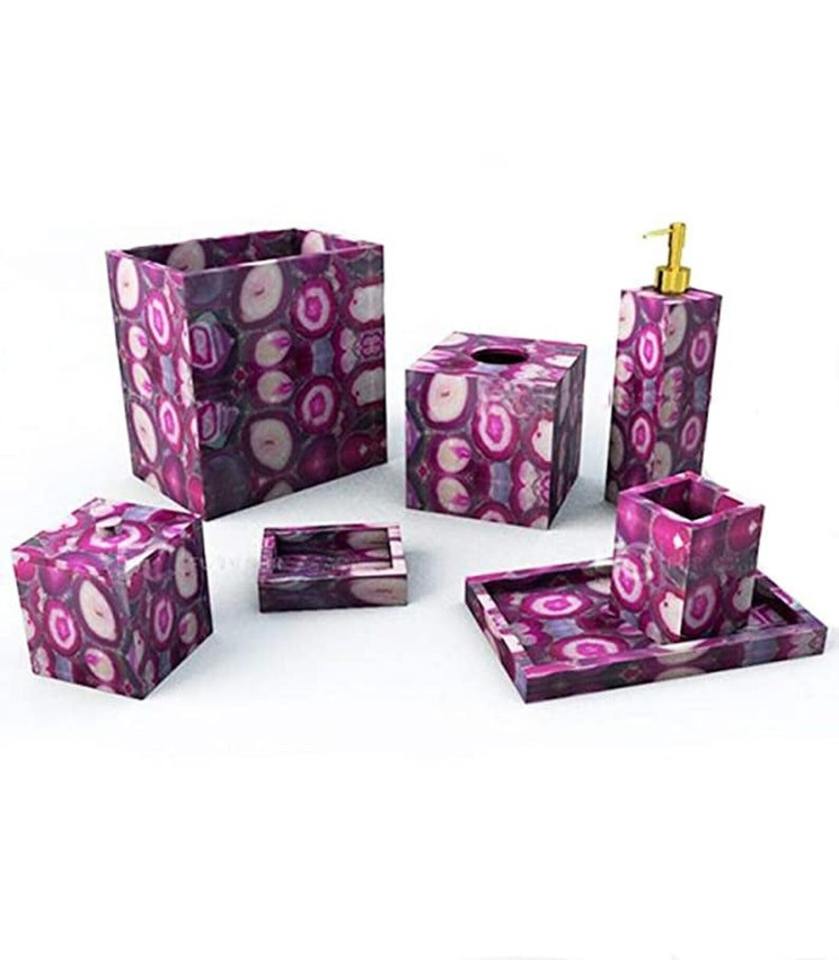 Pink Agate bathroom Accessories with Adorable Towel Tray, Soap Dish, Soap Dispenser, Cotton Ball Box, Tissue Holder, Dustbin Box