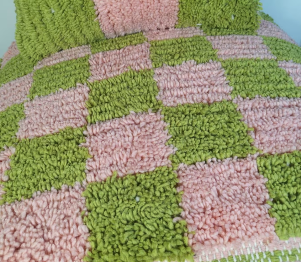 Pink And Green Checkered Floor Cushion Covers