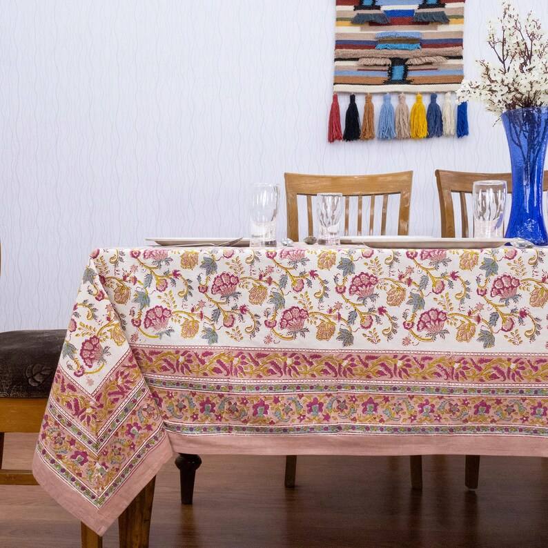 Pink And Yellow Tablecloth Wedding Table Decor Dining Table Cloth Cotton Table Cover Block Print Tablecloths Handmade