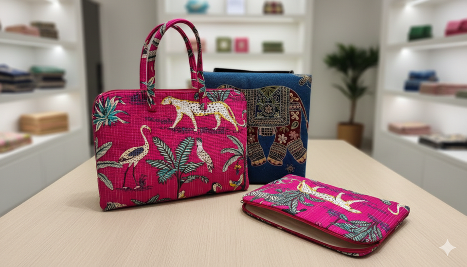 Pink Animal Print Handcrafted Quilted Laptop Bag Case | Modern Tree Print Eco-Friendly Durable Fashionable Business Waterproof
