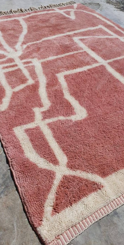 Mode:Pink Beni Mrirt with geometric white lines Handmade Moroccan Wool Rug